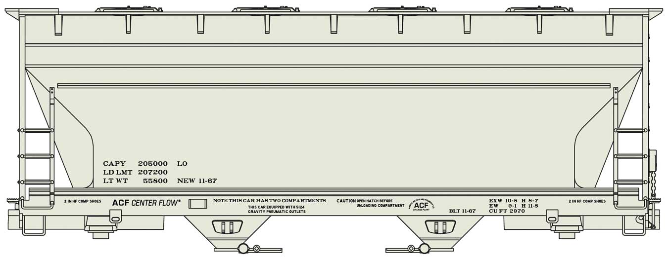 Accurail HO 2296 ACF 2-Bay Covered Hopper Kit, Data Only (gray, black)