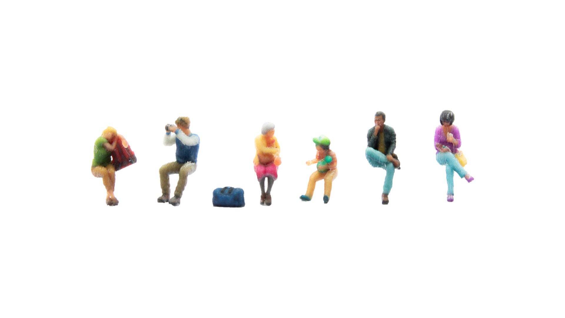 The NOCH figures "Seated Passengers" are perfect for buses, trains, waiting areas, or park benches on your N scale layout. These miniatures stand out with their lively poses and realistic details, authentically reflecting everyday life. Whether travelers, commuters, or walkers, these figures bring vibrancy to your scenes.
