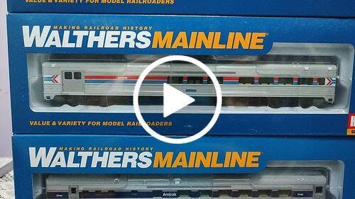 Walthers Mainline 910-30163 85' Budd Diner - Ready to Run -- Amtrak (Phase IV, silver, wide blue, thin red and white stripes), HO