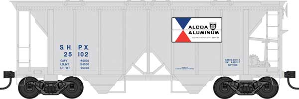 PREORDER Bowser HO 43592 70-Ton 2-Bay Covered Hopper with Open Sides, Alcoa Aluminum #25104 | 25.46