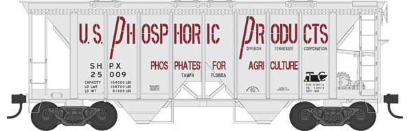 PREORDER Bowser HO 43640 70-Ton 2-Bay Covered Hopper with Open Sides, US Phosphoric Products #25025 | 25.46