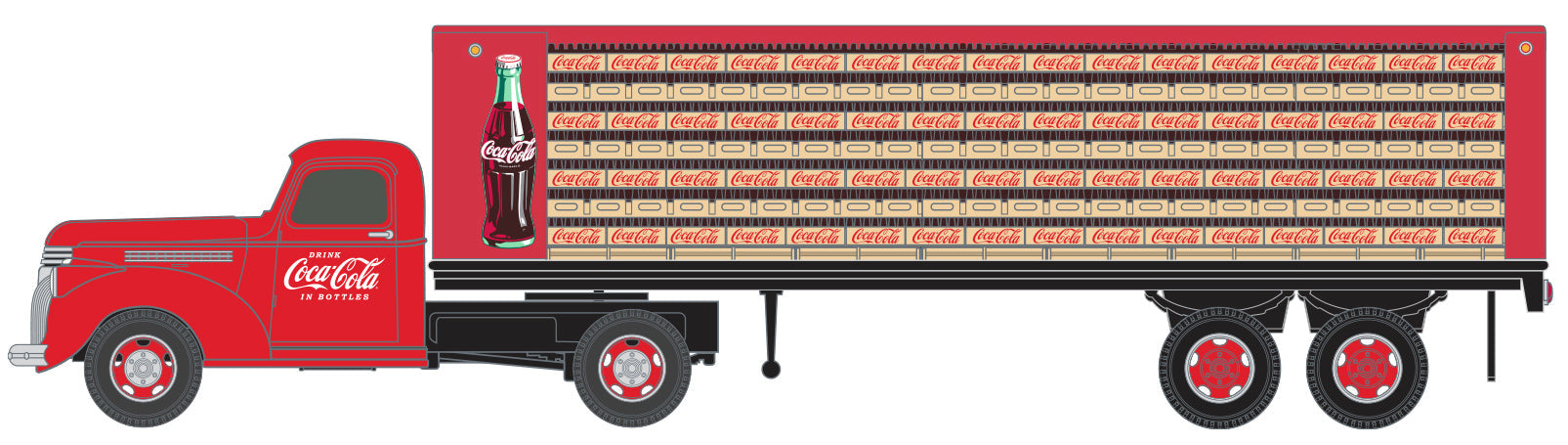 Classic Metal Works HO 31207 1941-1946 Chevrolet Tractor with Flatbed Trailer and Coca-Cola Bottles