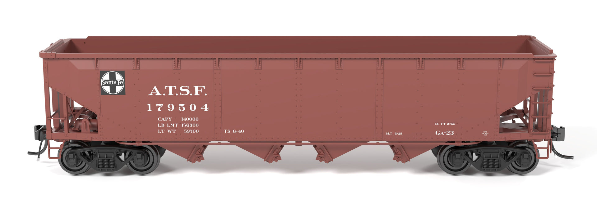 PREORDER Broadway Limited Imports HO 10139 ARA 70-ton 4-Bay Hopper, ATSF, Oxide Red w/ White, 6-pack B