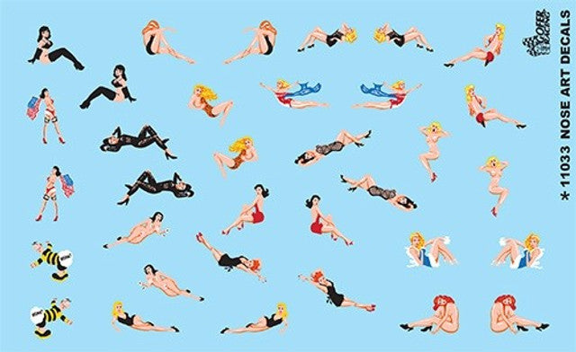 Nose Art model car decals have some good-looking honeys to decorate your hot rod, rat rod or custom van. If you’re building airplane models you may wish to use our Nose Art decal on your plane. Nose art originally started during World War II the pilots and crews named and decorated their aircraft. These good-looking nose art girls on our model decal sheet can also look great on your model. Gofer racing model car decals are for 1/24.1/25 scale model cars and are silkscreened printed for quality in the USA.