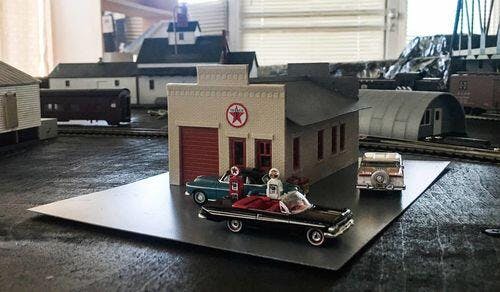 The HO scale Design Preservation Model kit of Schultz's Garage is a versatile little building that can be used to represent a multitude of different businesses. In my case, I'm using it to convey a small repair shop that double duty's as a gas station. The vehicles and other details seen in my photo are not included in the kit. It's plastic and Plastruct glue adheres the sections together quite well with a tight bond. My biggest concern, is the lack of 'open' doors. I would like to see an option for doors that would include a choice of open or closed doors. The brick detail for the exterior walls is very crisp with the detail being clean and prominent, being molded in a tan color. The doors and window frames are a dark red. I wish they would mold those in white, as the red has a tendency to bleed through lighter colors of paint, even with a good primer coat. I can't say much about the instructions, since the kit is so easy to assemble, that I didn't even look at the instructions. I think that if I built this kit again, I would enlarge the front window to a picture window configuration. It is generally a very good kit, that is simple to construct with a minimum of assembly time. I do recommend it.