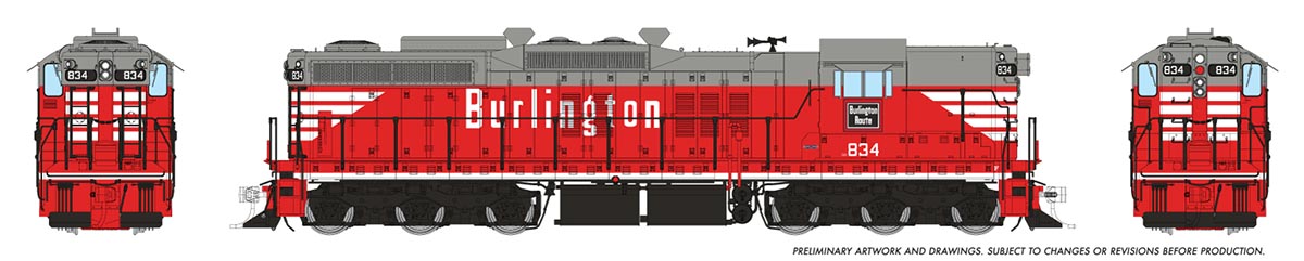 PREORDER Rapido 050623 HO EMD SD9 High Nose - ESU LokSound and DCC -- Chicago, Burlington & Quincy #834 (Chinese Red, gray, white)