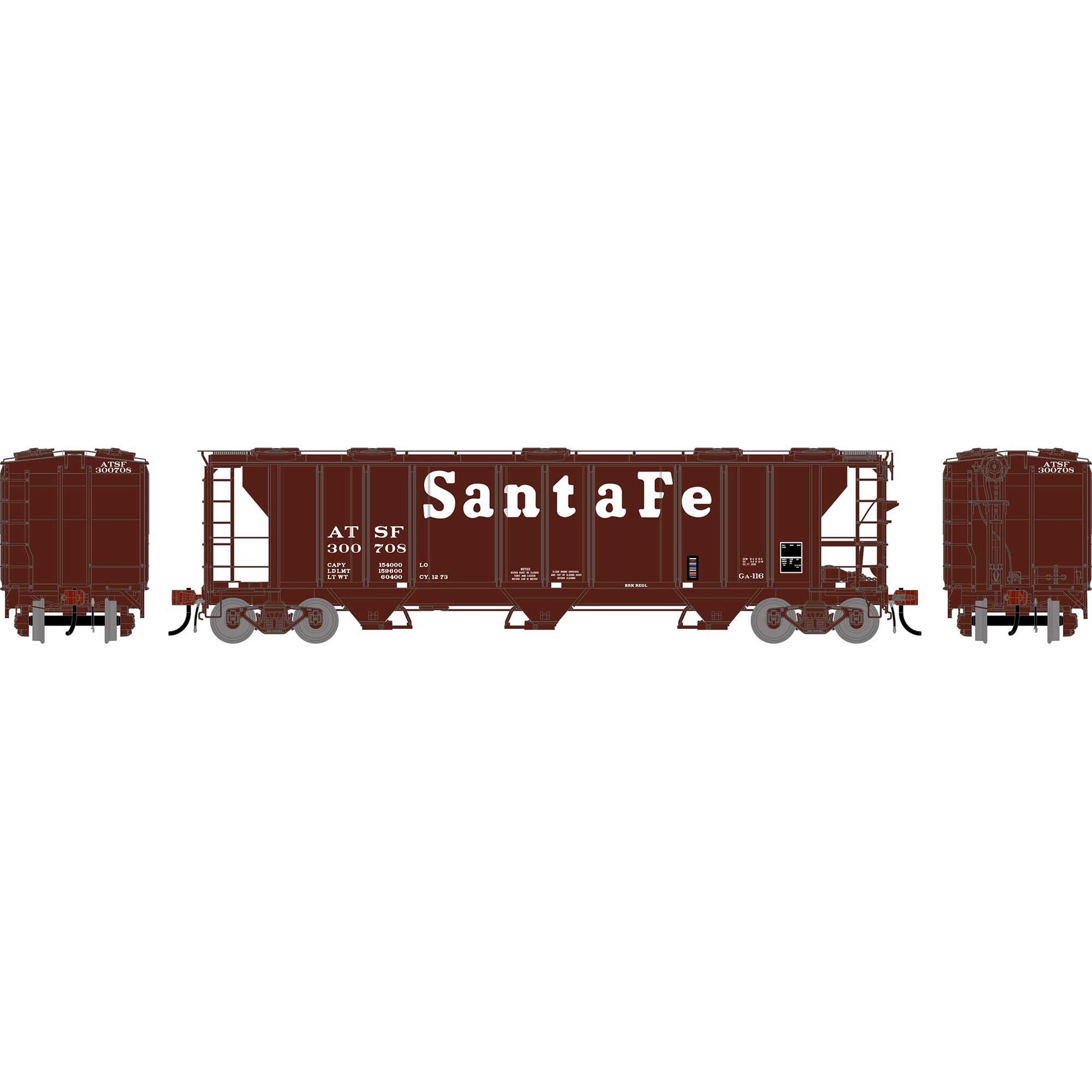 PREORDER Athearn Genesis HO G2593 PS 2893 3-Bay Covered Hopper, Atchison Topeka & Santa Fe #300708