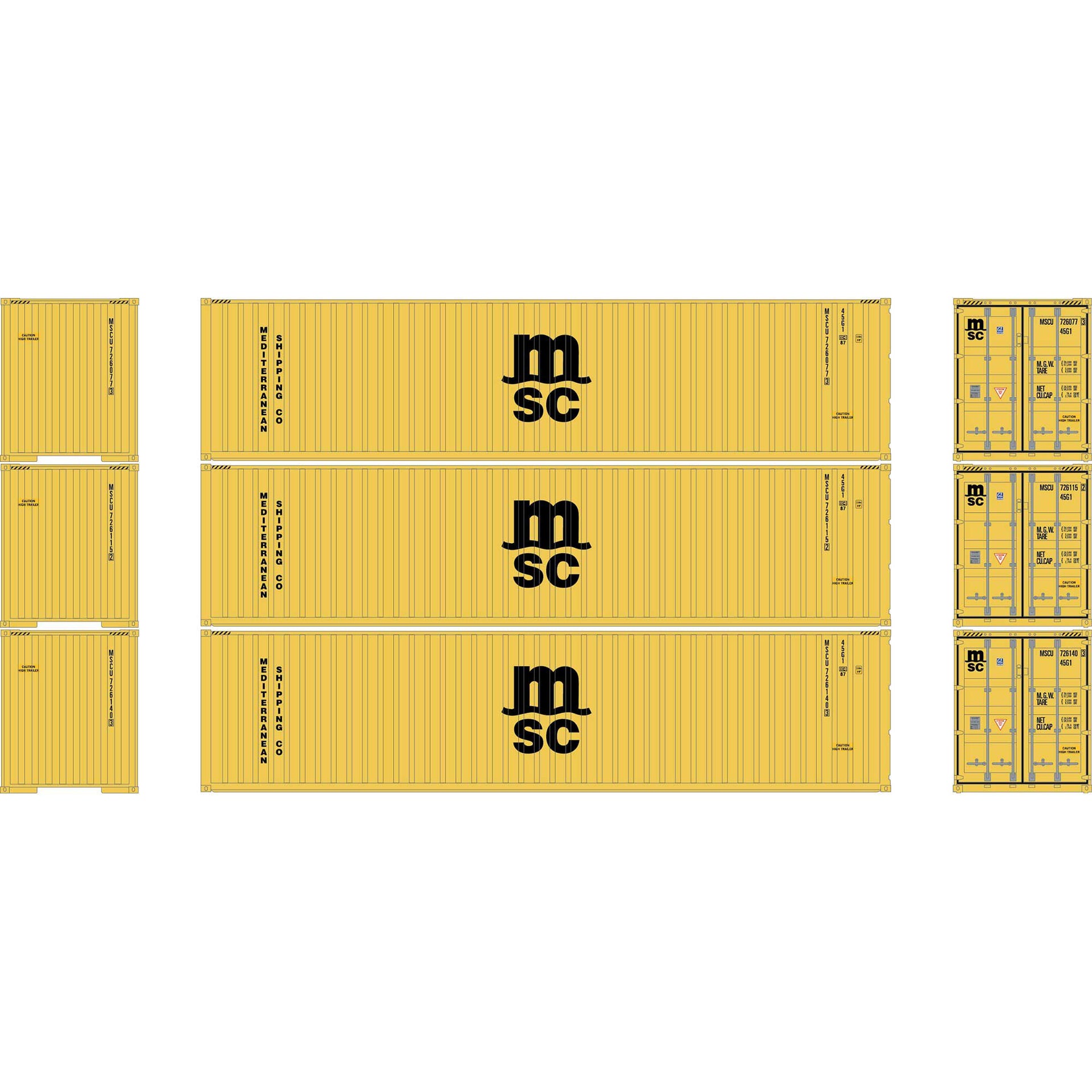 PREORDER Athearn HO 2702 40' Corrugated High-Cube Containers, Mediterranean Shipping Company #726077-3/726115-2/726140-3 (3-Pack) | 40.79