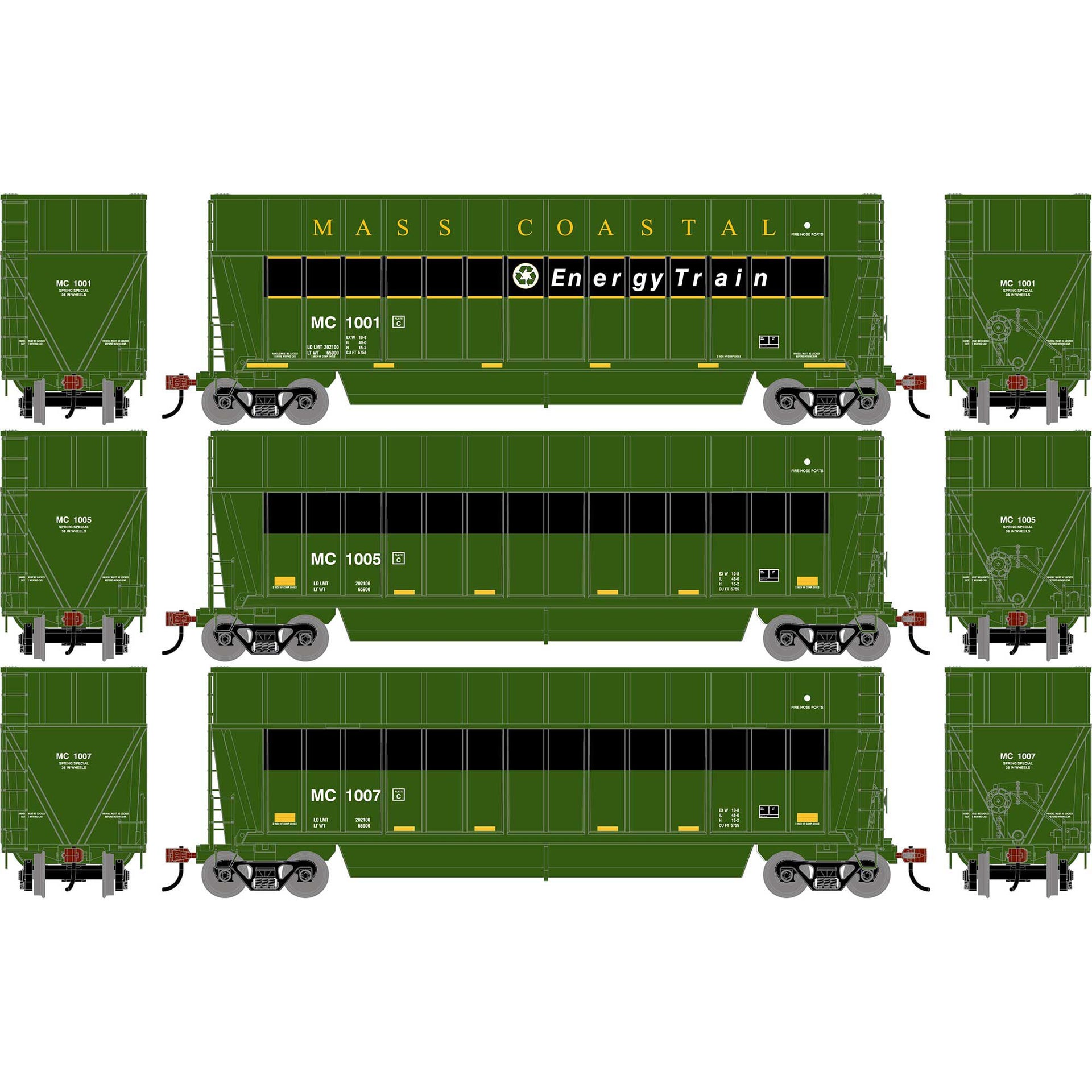 PREORDER Athearn HO 2747 Berwick Bathtub Gondola with Extended Sides, Massachusettes Coastal #1001/1005/1007 (3-Pack)