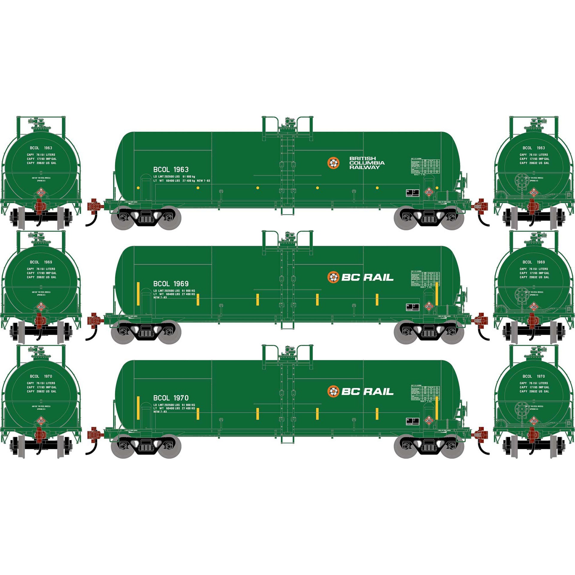 PREORDER Athearn HO 2761 20,900 Gallon Acid Tank Car, British Columbia #1963/1969/1970 (3-Pack)