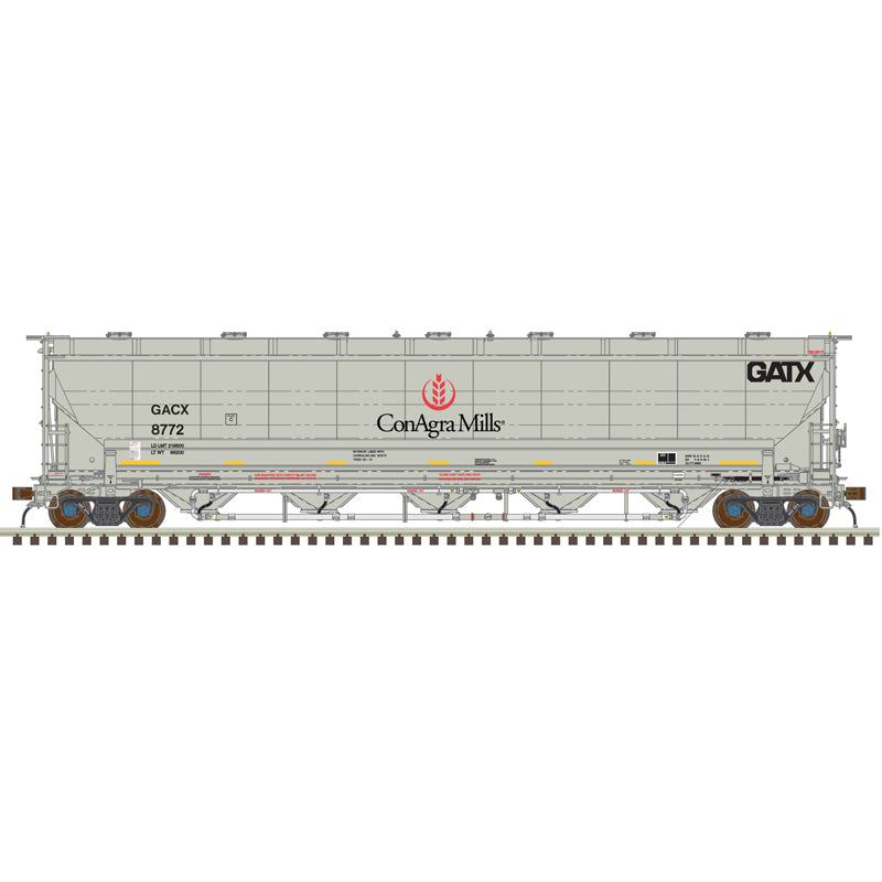 PREORDER Atlas 20007492 HO Trinity 5660 PD Covered Hopper - Ready to Run -- ConAgra Mills GACX #8776 (gray, black, red logo, yellow conspicuity stripes)