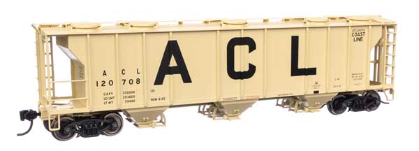 WalthersMainline 910-7040 HO 50' Pullman-Standard PS-2 2893 3-Bay Covered Hopper - Ready to Run - Atlantic Coast Line #120708