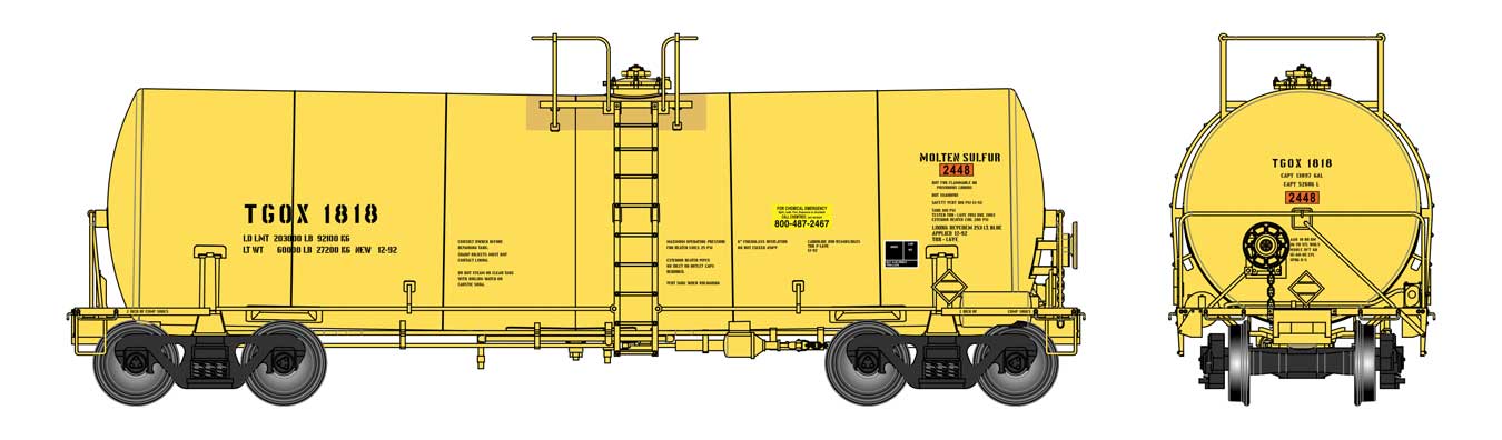 PREORDER WalthersProto 920-100069 HO 40' Trinity 14,000-Gallon Molten Sulfur Tank Car - Ready to Run -- TGOX #1818
