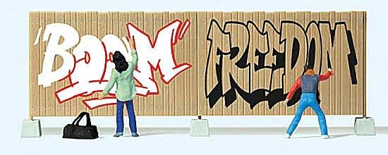 Preiser HO 94N 10334 Graffiti Artists, 2 Figures & Fence