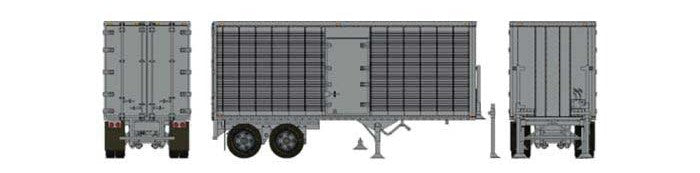The two trailers are the 26’ Can-Car Industries Dry-Vans with and without side doors, and the 45’ Trailmobile design trailers, also with and without side doors. The 26’ trailers were widely used by Canadian National and Canadian Pacific for package delivery services, as well as trucking services and retail store owners. These unique trailers have iconic ribbed sides with catchy graphics. Eventually, they were phased out of service in the 1980s.