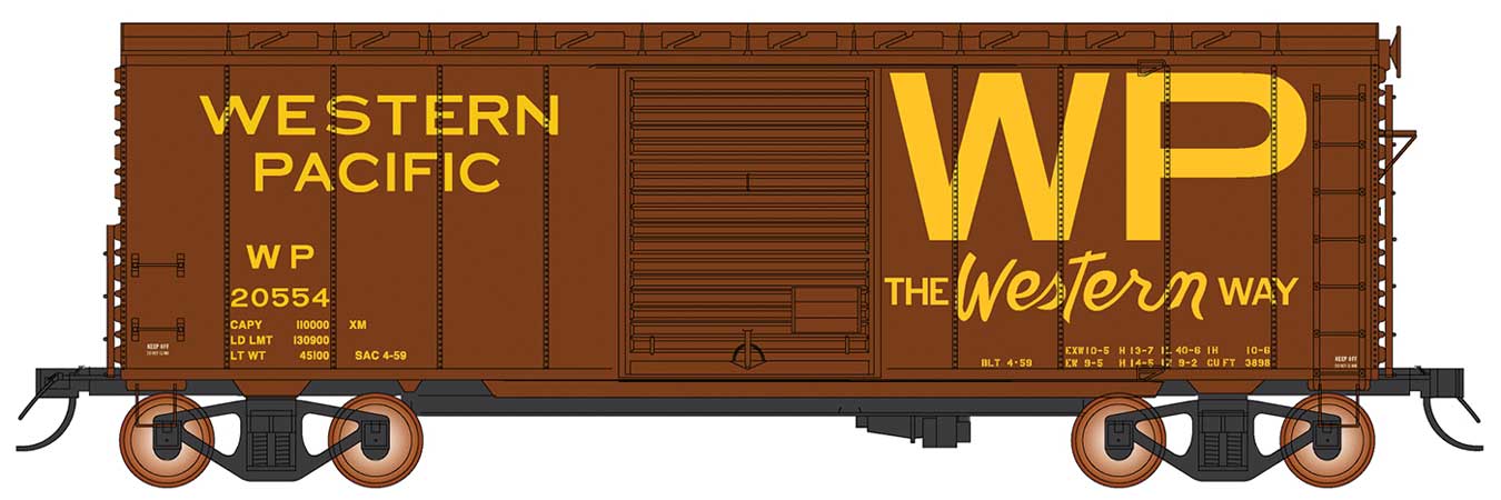 PREORDER Intermountain HO 38715 1937 AAR 10'6" Boxcar, 4-3-1 Improved Dreadnaught Ends, 6' Door, Ready to, Western Pacific (Boxcar Red, yellow, Large WP, Western Way Slogan)