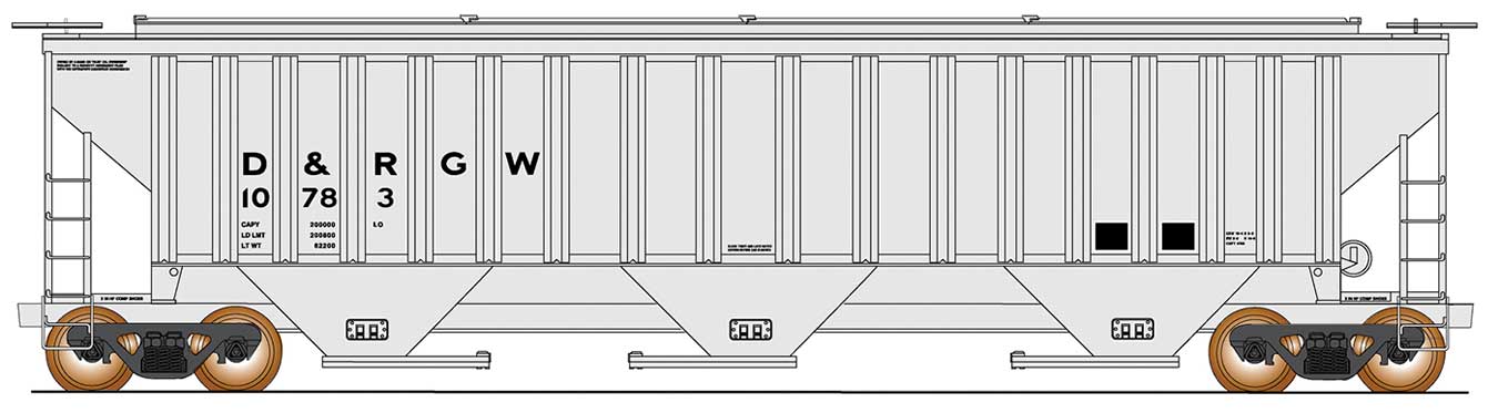 PREORDER Intermountain HO 472306 Trinity Rib-Side Covered Hopper, Denver & Rio Grande Western (gray, reporting marks only)