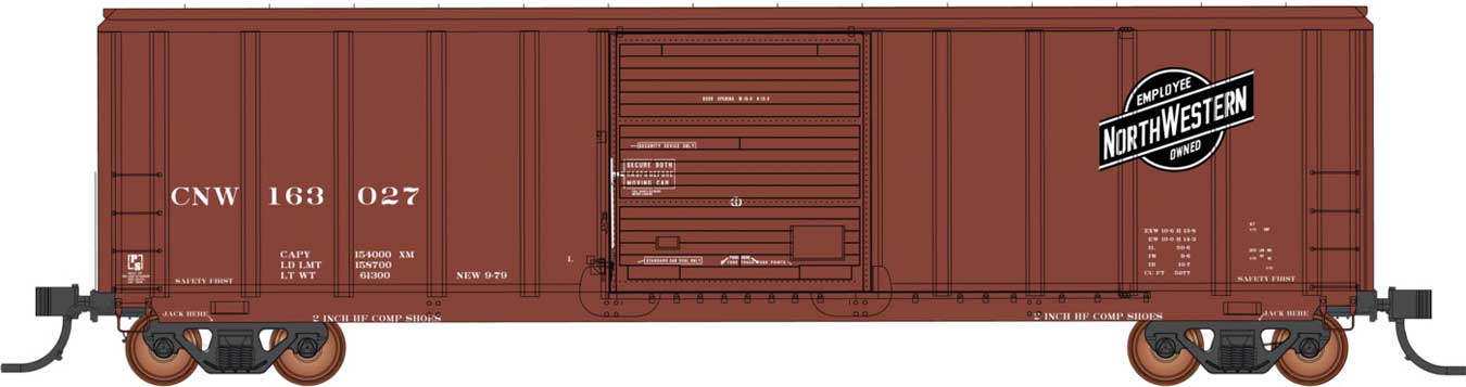 PREORDER Intermountain HO 47528 Pullman-Standard 5277 Cu.Ft. Exterior-Post Boxcar, Chicago & North Western (Boxcar Red, black logo)