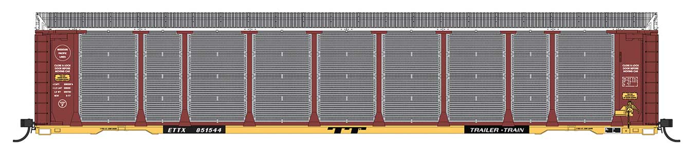 PREORDER Intermountain HO 482103-02 Tri-Level Enclosed Auto Rack, Missouri Pacific ETTX #851504 (Boxcar Red, yellow, black, silver, MP Buzz Sa