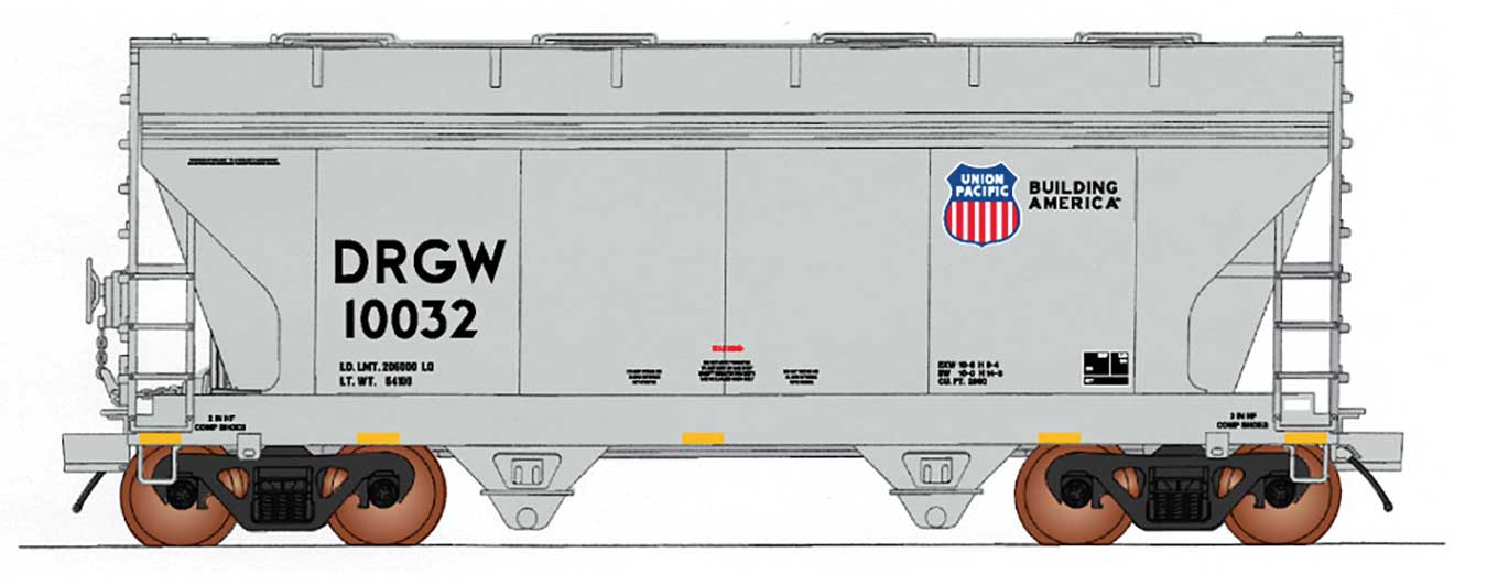 PREORDER Intermountain N 66550 ACF 2-Bay Center-Flow Covered Hopper, Union Pacific (gray, SP or DRGW Reporting Marks, Building America Logo)