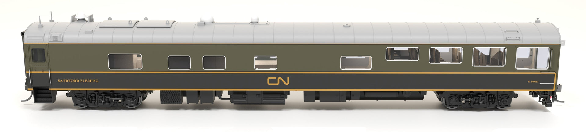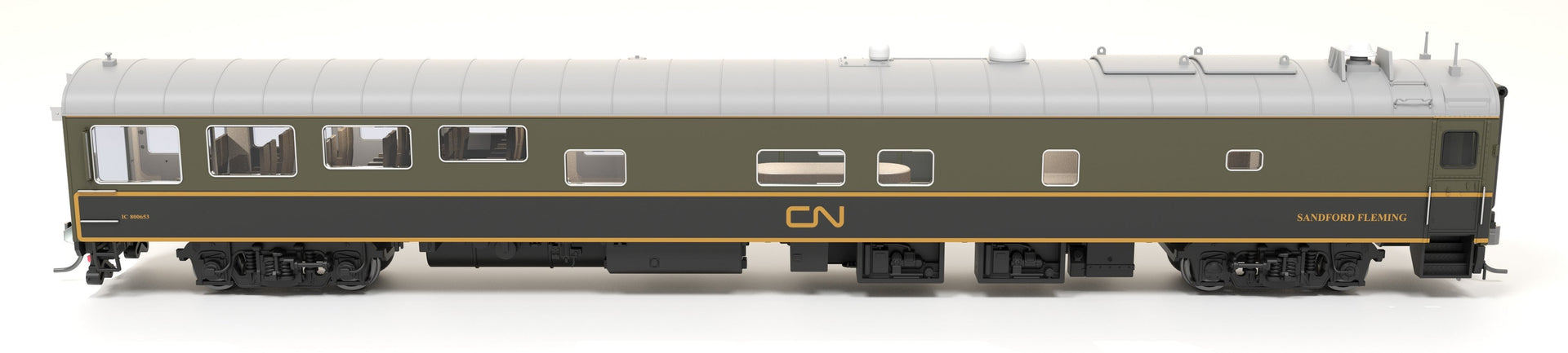 Broadway Limited Imports HO 9160 CN Track Inspection Car, IC 800653, "Sandford Fleming", Green/Black/Yellow Scheme, HO