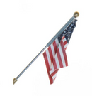 United States flag hanging from a metal pole and a mounting bracket. Display