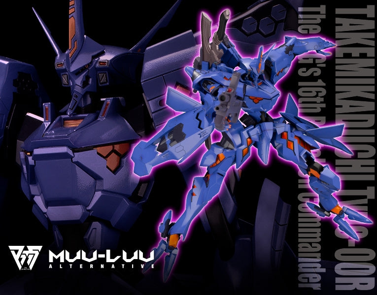 From Muv-Luv Alternative Total Eclipse, TAKEMIKADUCHI Type-00R The IRG's 16th Battalion Commander, the Type-00 Tactical Surface Fighter of the Japanese Imperial Royal Guard, is updated into Ver.1.5 in NON-scale to rejoin Kotobukiya’s model kit series!