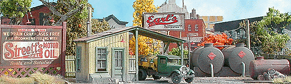 Features precision-cut, laser etched wood parts and complete instruction. Kit includes fencing, tanks, billboard, signs, lampheads and other white metal details.