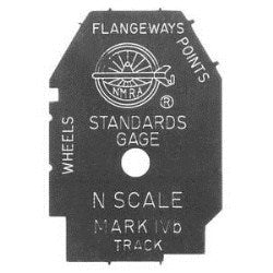 Designed and developed by the NMRA (National Model Railroad Association) Engineering committee, this pocket sized Standards Gauge enables you to check all important dimensions on your track and rolling stock as follows: Gauge of track and turnouts Flangeway depth and check gauge Clearance Height of loading platform If cars do not run correctly, this gauge will help you pinpoint the trouble. One-piece stamped metal, complete instructions included