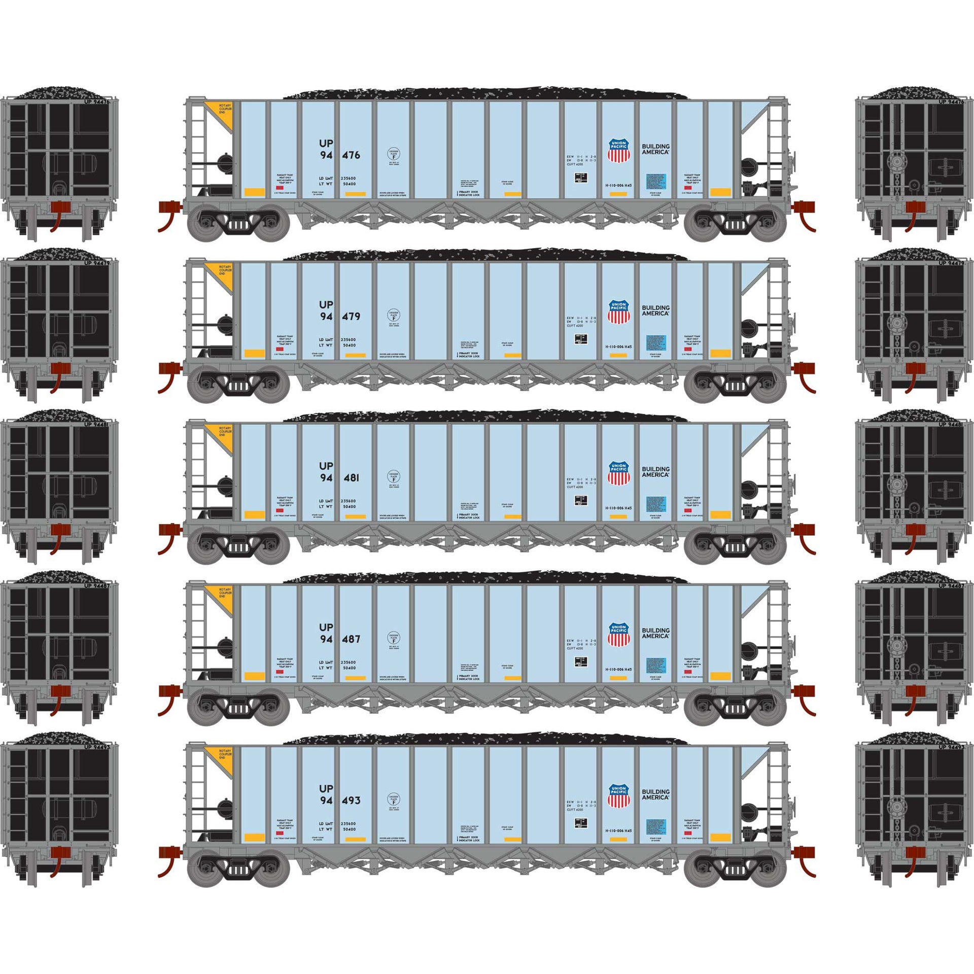 PREORDER Athearn ATH-1152 HO Ortner 5-Bay Hopper With Load, UP #94476 / 94479 / 94481 / 94487 / 94493