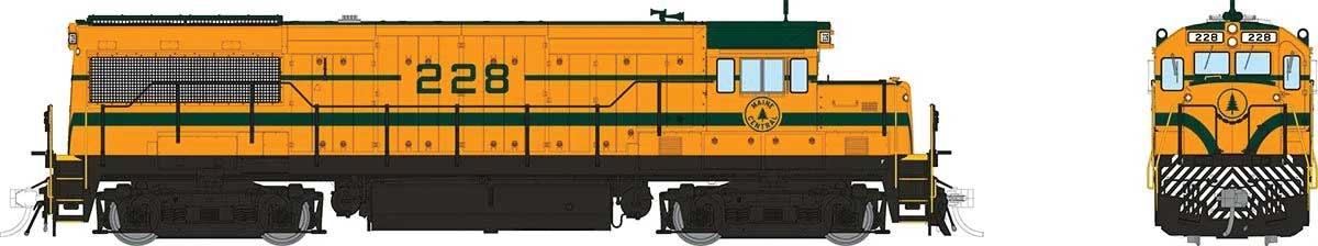 PREORDER Rapido HO 35549 GE U25B Low Hood, Locomotive Maine Central #228 (DCC & Sound-Equipped)