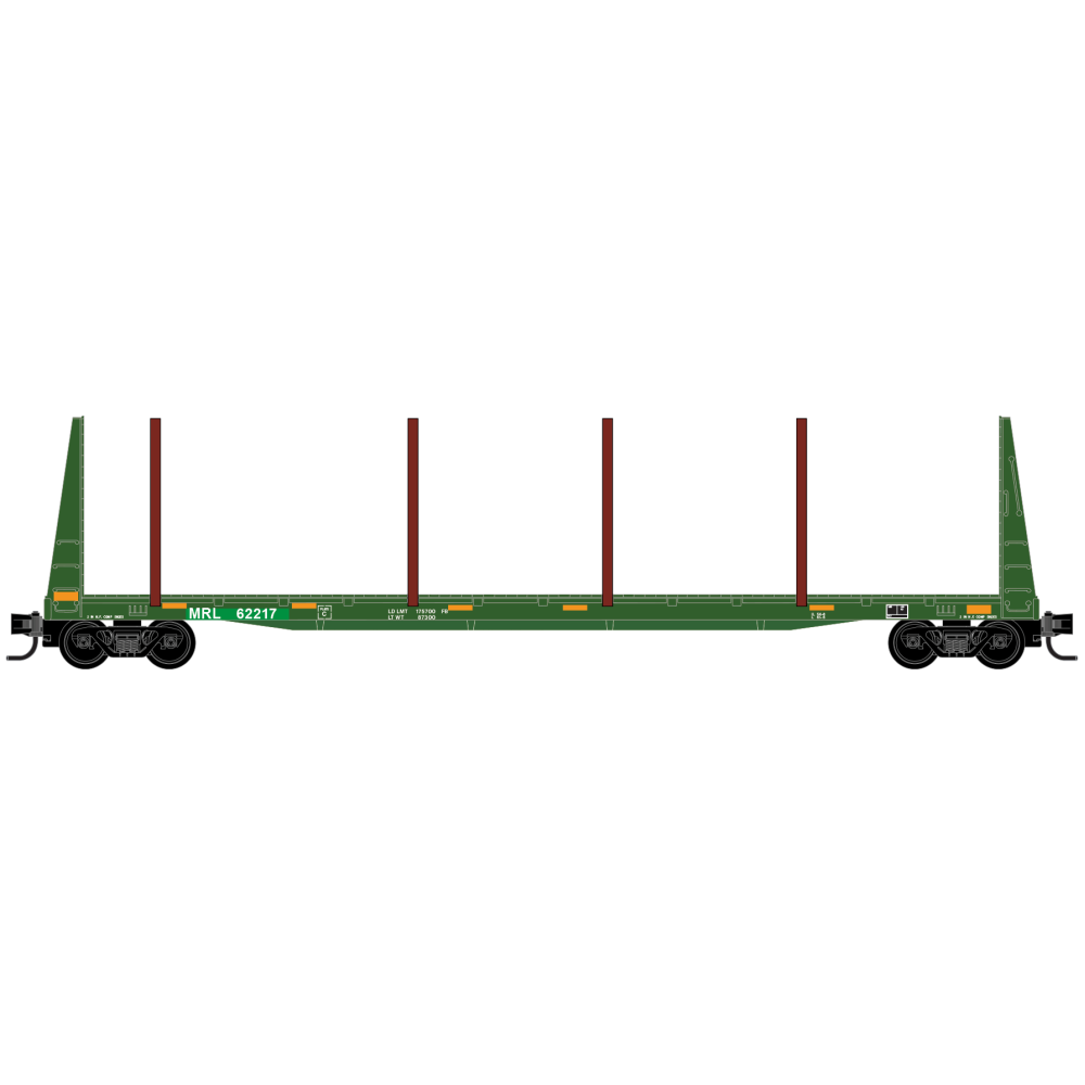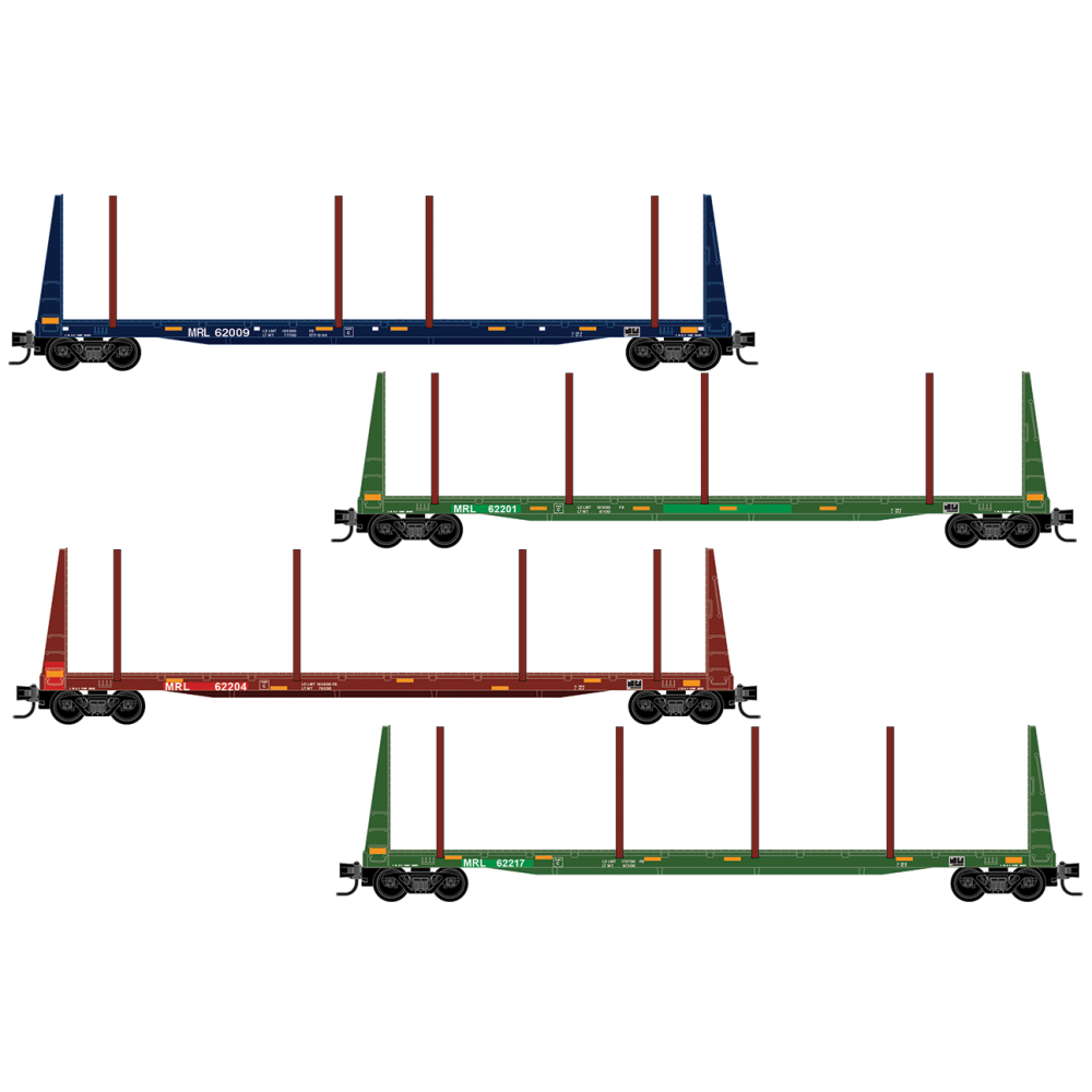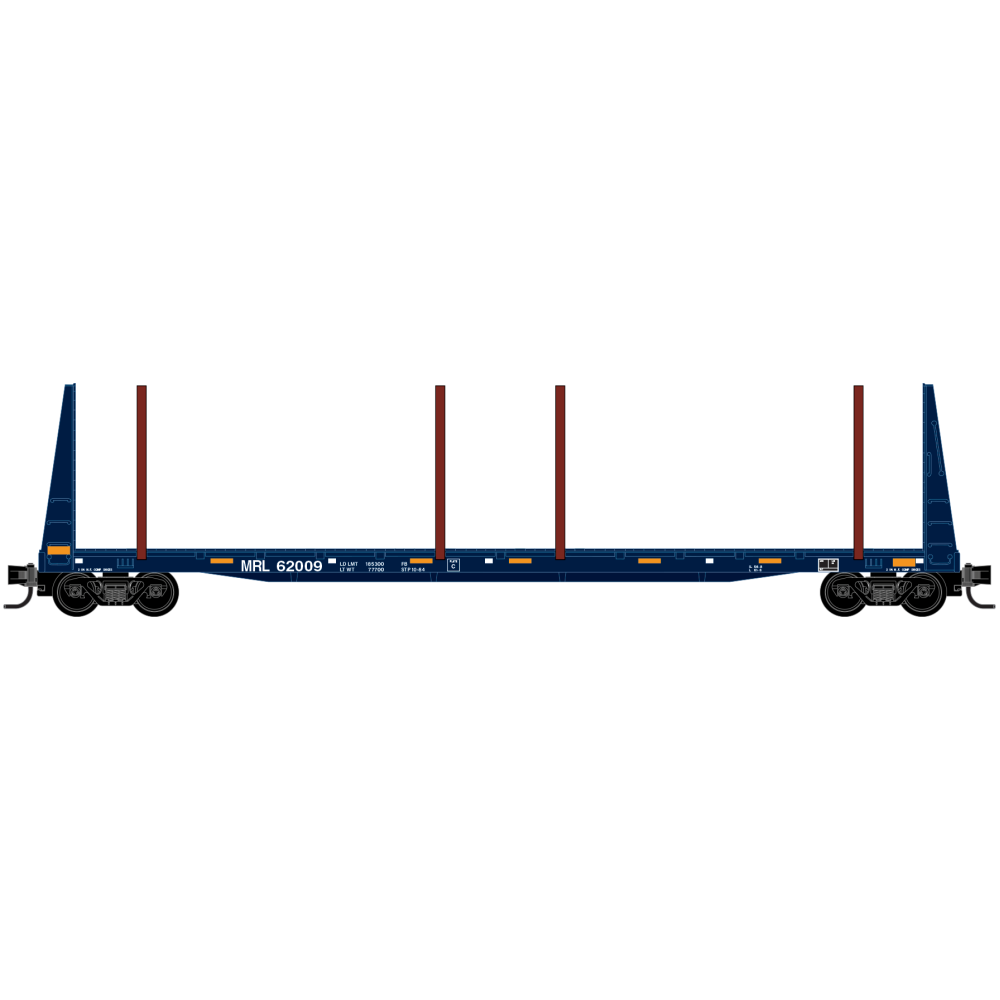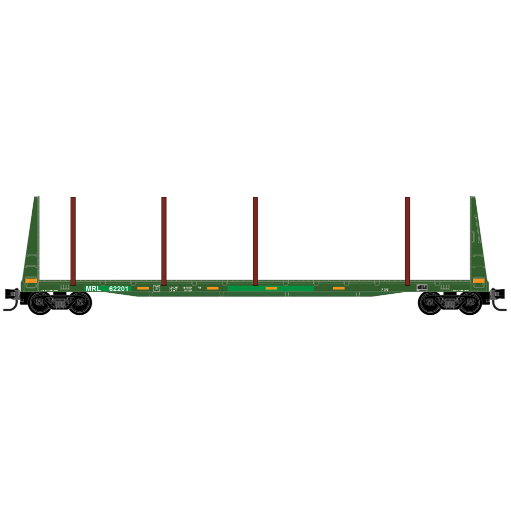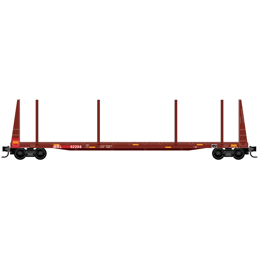 These Montana Rail Link bulkhead flatcars can be seen in a variety of paint schemes with varying placement of side stanchions for log transport. In January of 2024 BNSF resumed operations of the MRL line becoming the MRL Subdivision, after working in collaboration with MRL for nearly 4 decades.