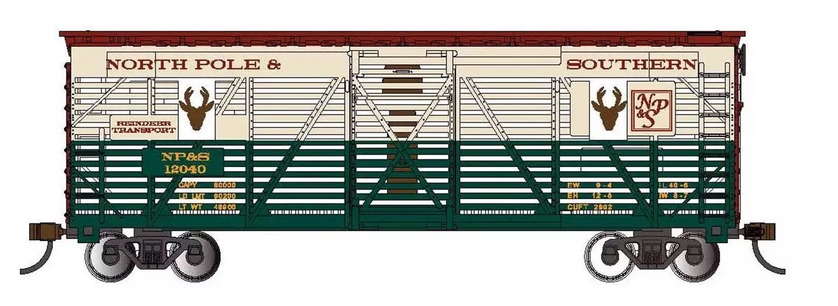 Enjoy the fun action as four reindeer heads peek through windows on both sides as car moves around the track. The car also features sliding doors, metal wheels, and E-Z Mate Mark II couplers.