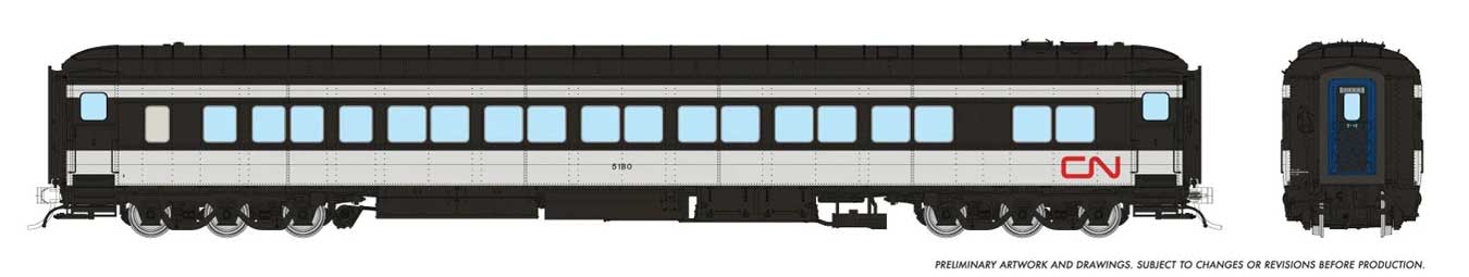 PREORDER Rapido HO 125010 Canadian Car & Foundry Balloon-Top Coach, Canadian National #5198 (black, white, red Noodle Logo)