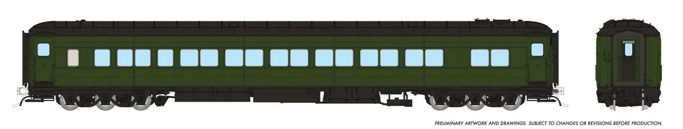 PREORDER Rapido HO 125099 Canadian Car & Foundry Balloon-Top Coach, Painted, Unlettered (green, black)