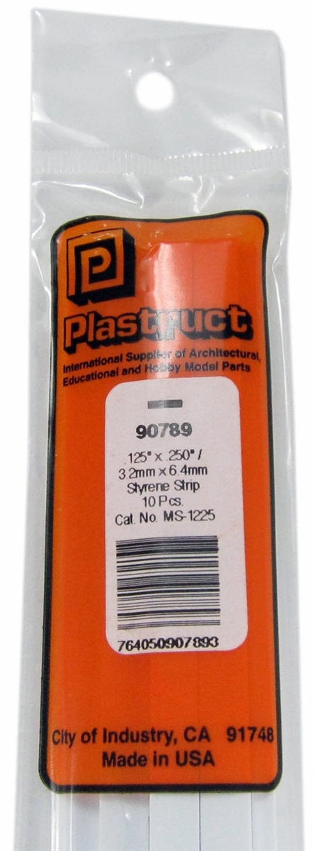 Plastruct 90789 MS-1225 Solid Styrene Rectangular Strip, .250" (10)