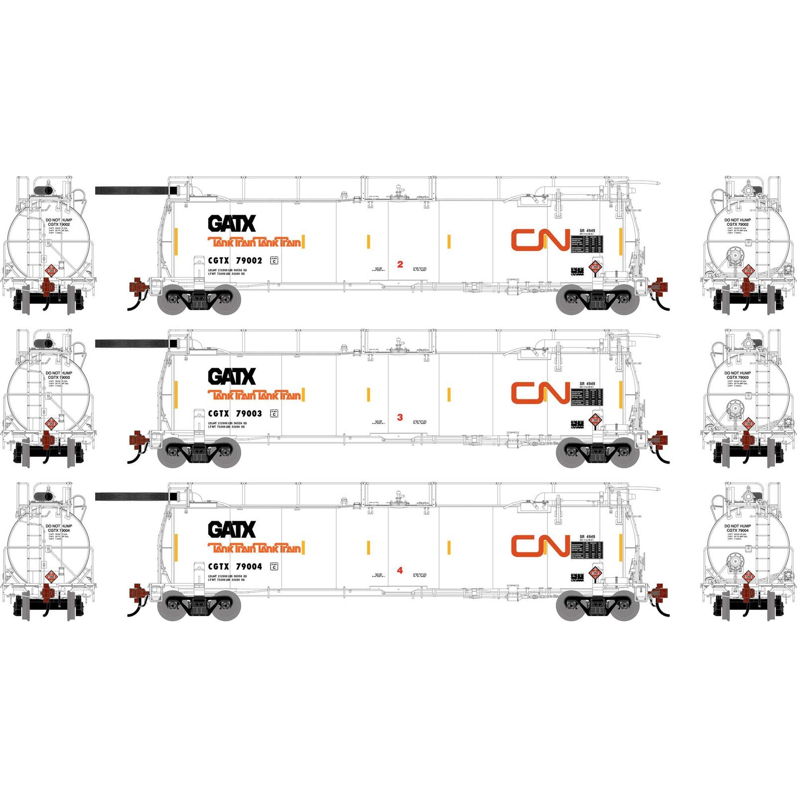 PREORDER Athearn Genesis ATHG-1320 HO TankTrain Intermediate, CGTX #79002 / #79003 / #79004
