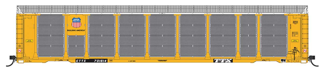 PREORDER Intermountain HO 482108-04 Tri-Level Enclosed Auto Rack, Union Pacific ETTX #701614 (yellow, black, silver, Building America Logo)