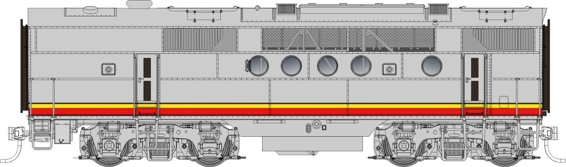 PREORDER Rapido 053004 HO EMD FT-B - Standard DC -- Santa Fe, No Number (Warbonnet, silver, red, black, yellow)