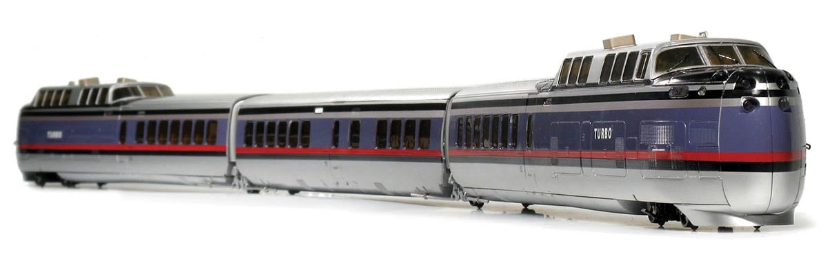 PREORDER Rapido 203503 HO UAC TurboTrain 5-Car Passenger Train-Only Set (2022 Ver.) - Sound & DCC Equipp -- Amtrak #52-73-74-75-53 (Early Scheme, white, red, blue)