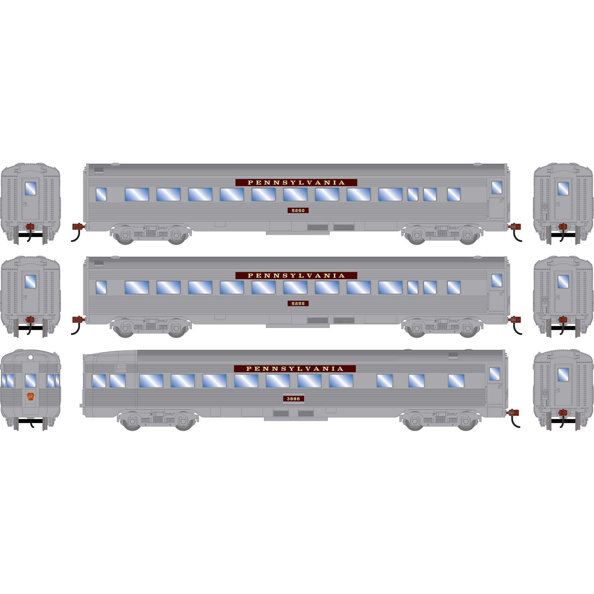 PREORDER Roundhouse HO 3546 Streamline Car Set, Pennsylvania Coach #5250/Coach #5255/Observation #3886 (3-Pack)