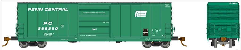 Rapido 139003A Evans X72 Box car: Penn Central Small Logo - Single Car- random car #, HO