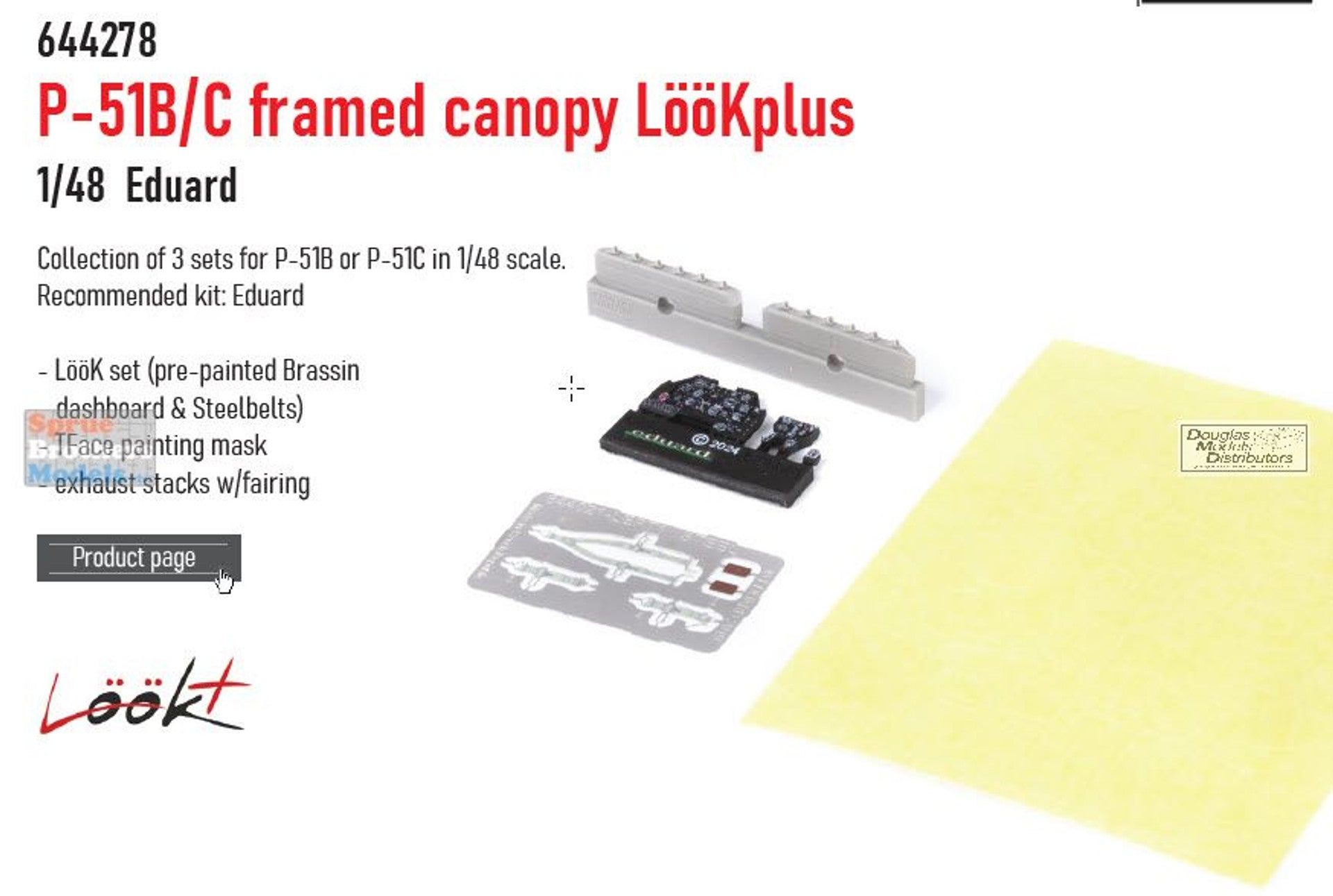 Eduard P-51B/C framed canopy LooKplus 1/48 Brassin for EDUARD