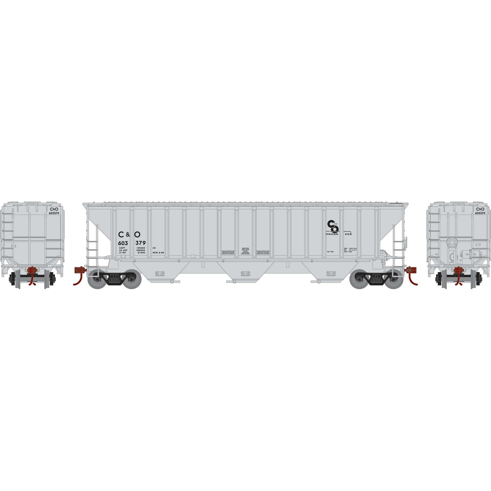 Athearn ATH22268 HO PS4740 Covered Hopper, C&O #603379