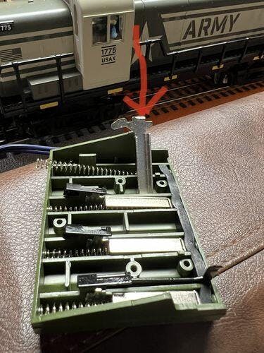 Shipping was perfect, package perfect, but Lionel design was flawed. The arrow in the pic showed where I removed metal. Made a tapered knife edge to keep the spring coil edge from stopping the rear(loaded) movement, preventing the missiles from loading. After modification, all missiles work great!