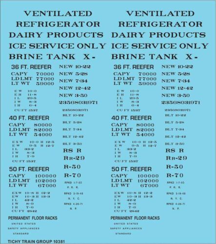 Tichy Train Group HO 10381 Railroad Decal Set, Generic 36', 40' and 50' Refrigerator Car, Reefer Data (black lettering)