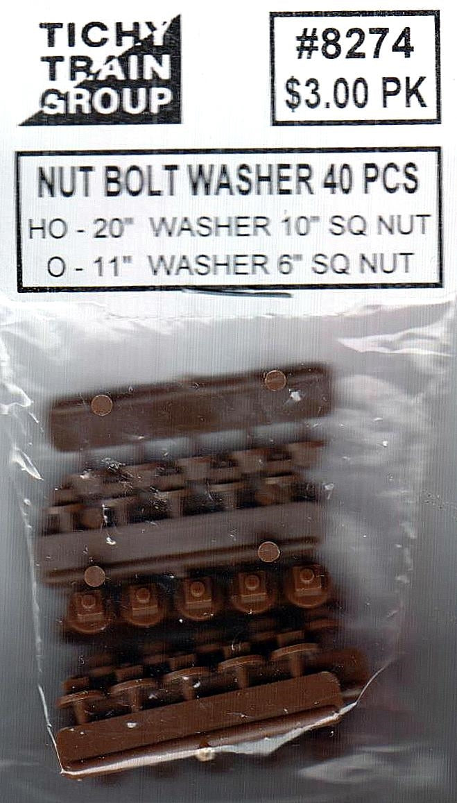 Tichy Train Group HO 8274 Nut Bolt Washer 20" Washer 10" Sq Nut (40)