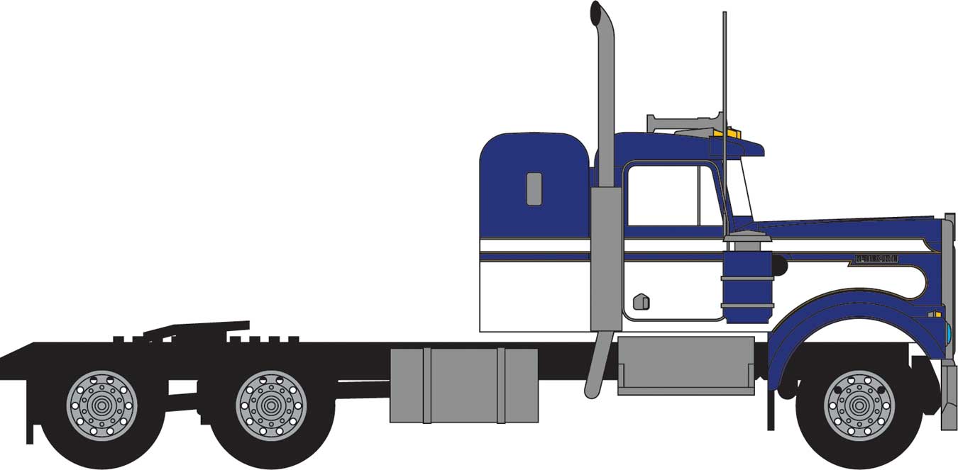Trainworx N 49034 1970s Kenworth W900 Seminole Tractor with 36" Sleeper Cab, Assembled, Blue, White