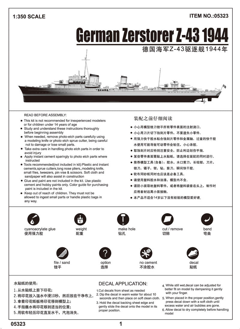 Trumpeter 05323 German Zerstorer Z-43, 1944 1:350