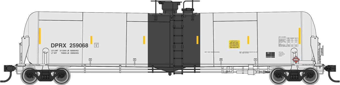 Walthers 920-100738 55' Trinity Modified 30,145-Gallon Tank Car - Ready to Run -- PBF Holding Co. DPRX #259068 (white, black; yellow conspicuity marks), HO